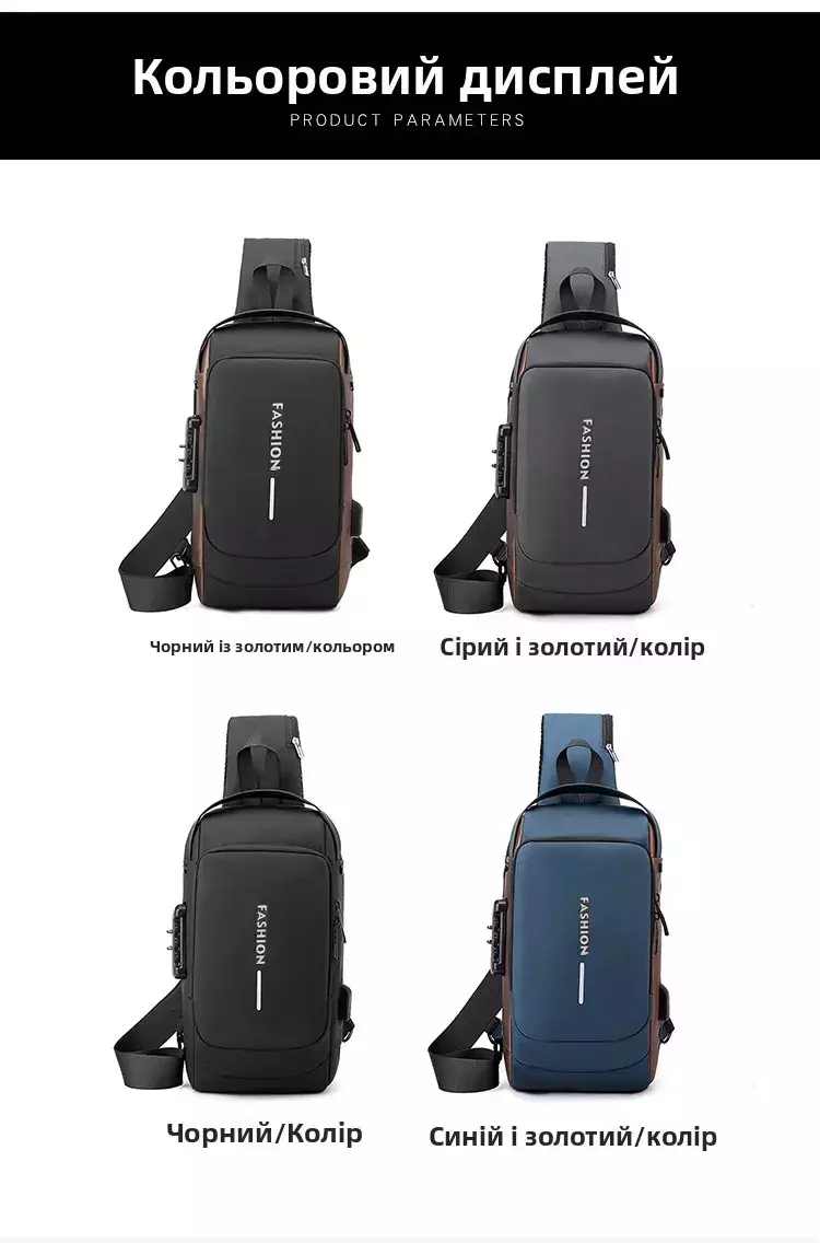 1x Bolsa de Ombro Antifurto com Carregamento USB