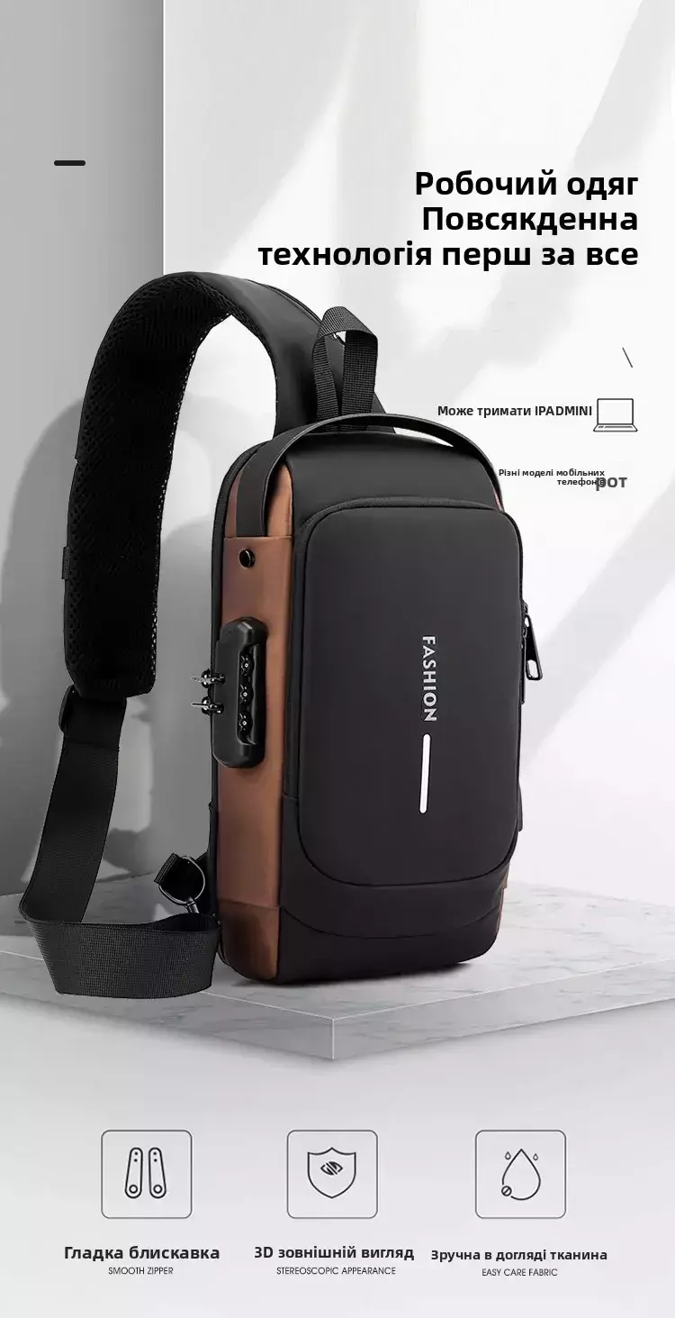 ✅ Design antifurto: compacto, moderno e com múltiplos compartimentos para organizar tudo.
