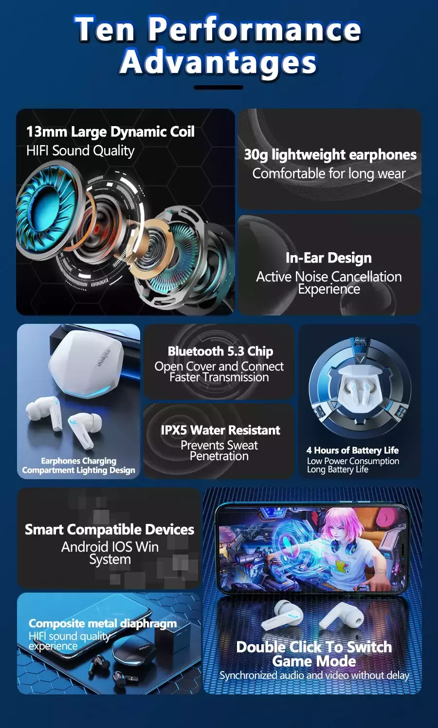 Áudio HIFI com Cancelamento de Ruído → Som imersivo para música, chamadas e jogos.